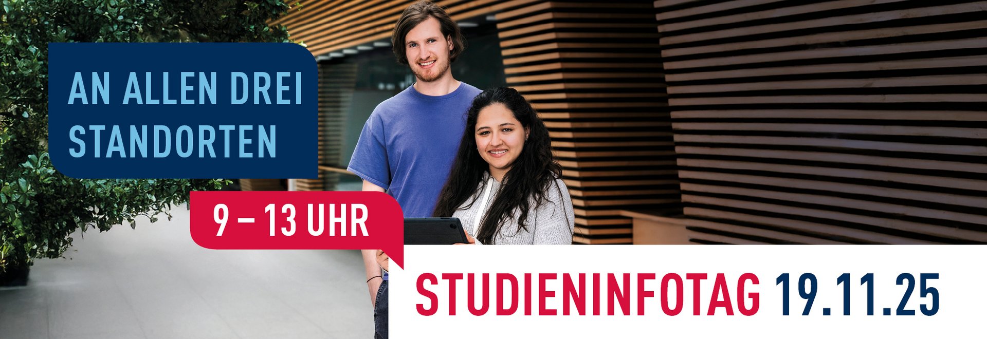 An drei Standorten erwarten Dich spannende Schnuppervorlesungen und ein Markt der Möglichkeiten, bei dem du unsere vielfältigen Angebote kennenlernst und Deine zukünftigen Professorinnen und Professoren triffst. Einen Blick hinter die Kulissen bekommst Du bei den Führungen durch unsere Labore.
