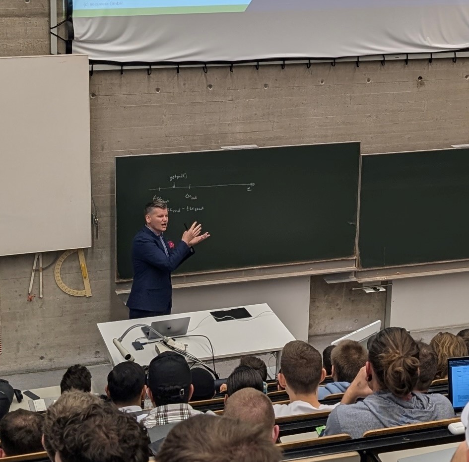 Stellen Sie sich vor, Sie sitzen in einem brennenden Haus – niemand würde in dieser Situation über die Nützlichkeit und Kosten des Brandschutzes diskutieren wollen. In der Softwareentwicklung tun wir dies beim Thema IT-Sicherheit seit Jahren. So beschrieb Tobias Glemser, Geschäftsführer von secuvera, die Situation der IT-Sicherheit in seinem Vortrag beim IT-Kolloquium der Fakultät Informatik und Informationstechnik der Hochschule Esslingen am 16.10.2024. Die Studierenden konnten sich, im bis auf den letzten Platz gefüllten Hörsaal, durch die lebhaften Praxisbeispiele ein plastisches Bild der IT-Sicherheit und ihrer (teils fehlenden) Rolle in der Softwareentwicklung machen. Die Fakultät bedankt sich bei Tobias Glemser für dieses Highlight.