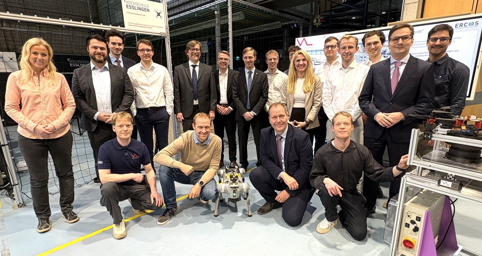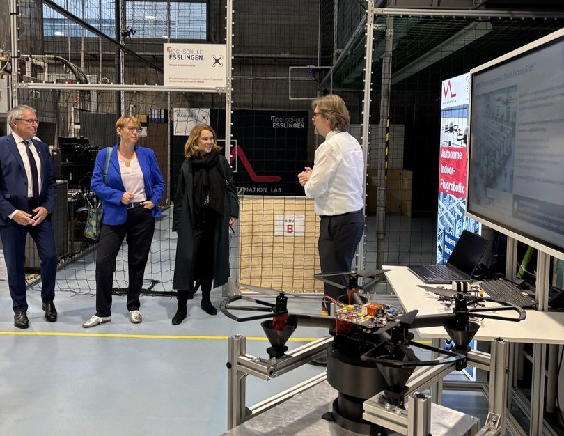 Das Virtual Automation Lab begrüßte Esslinger Oberbürgermeister Matthias Klopfer und IHK-Präsident Claus Paal. Diskutiert wurden die Produktion der Zukunft und Forschungsergebnisse zur autonomen Indoor-Flugrobotik.