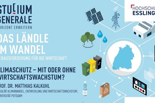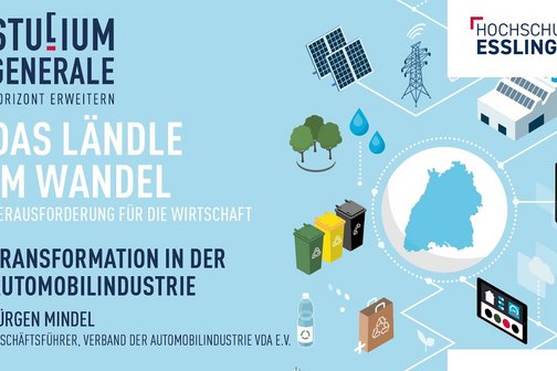 Die öffentliche Veranstaltungsreihe der Hochschule Esslingen widmete sich im Wintersemester 2021/22 dem Schwerpunkt: »Das Ländle im Wandel - Herausforderung für die Wirtschaft«. Beschleunigt durch den Klimawandel und die Digitalisierung, steht die Wirtschaft vor einem umfassenden Transformationsprozess – insbesondere im Automobilland Baden-Württemberg. Die Herausforderungen und Chancen für den Wandel wurden aus unterschiedlichen Perspektiven betrachtet und mit dem Publikum diskutiert. Zu einzelnen Vorträgen liegen Aufzeichnungen und Präsentationen vor, die Sie auf dieser Seite finden.