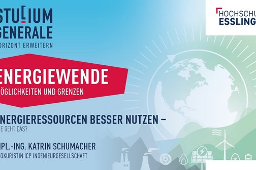 Die öffentliche Veranstaltungsreihe der Hochschule Esslingen widmete sich im Sommersemester 2023 dem Schwerpunkt: "Energiewende - Möglichkeiten und Grenzen". Wie ersetzen wir Kohle, Gas und Erdöl? Wie gelingt uns der Weg in eine grünere Zukunft? Komplexe Zusammenhänge verständlich erklärt, das schafft das Studium Generale.